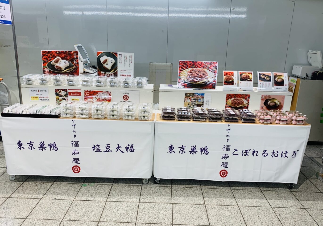 お餅のコシが自慢の東京巣鴨塩豆大福と半殺しの餅米がたまらないこぼれるおはぎです。